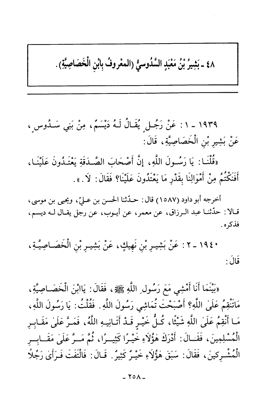 ١٩٤٠ - عَنْ بَشِيرِ بْنِ نَهِيكٍ، عَنْ بَشِيرِ بْنِ الْخَصَاصِيَّةِ، بَشِيرِ رَسُولِ اللهِ صلى الله عليه وسلم، قَالَ: