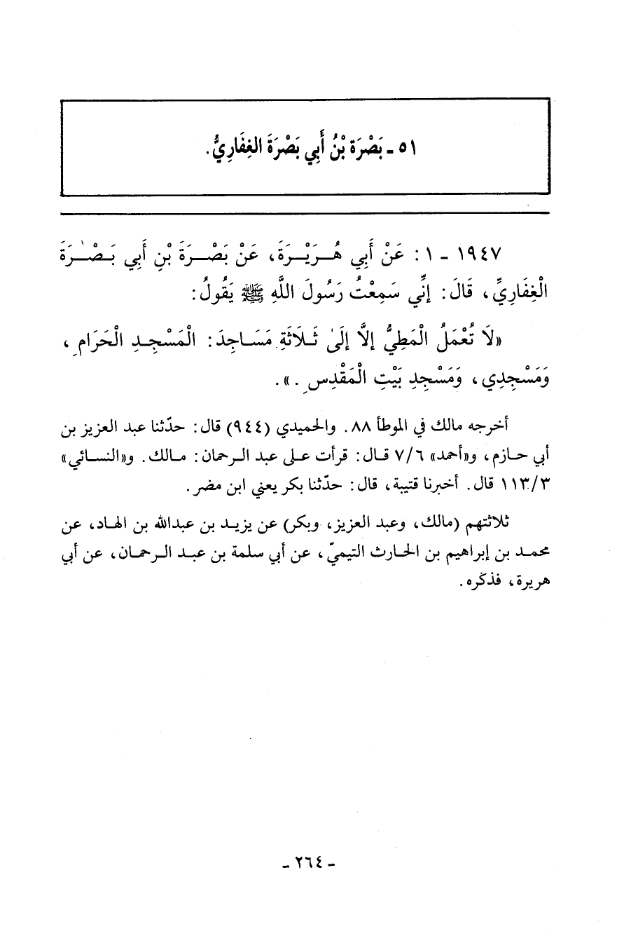 ١٩٤٧ - عن أَبِي هُرَيْرَةَ، عَنْ بَصْرَةَ بْنِ أَبِي بَصْرَةَ الْغِفَارِيِّ، قَالَ: إِنِّي سَمِعْتُ رَسُولَ اللهِ صلى الله عليه وسلم يَقُولُ: