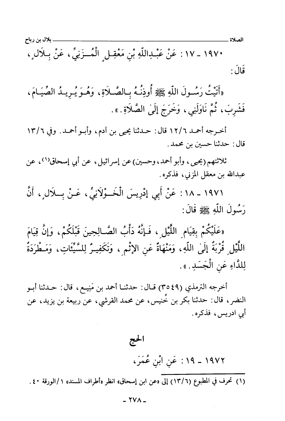 ١٩٧٠ - عَنْ عَبْدِ اللهِ بْنِ مَعْقِلٍ الْمُزَنِيِّ، عَنْ بِلَالٍ، قَالَ: