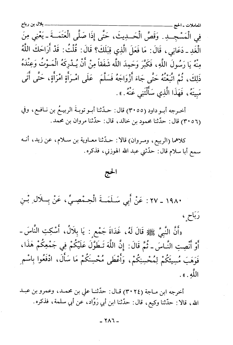 ١٩٨٠ - عَنْ أَبِي سَلَمَةَ الْحِمْصِيِّ، عَنْ بِلَالِ بْنِ رَبَاحٍ؛