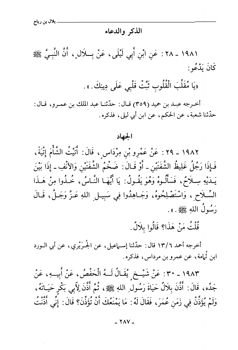 ١٩٨١ - عَنِ ابْنِ أَبِي لَيْلَى، عَنْ بِلَالٍ؛