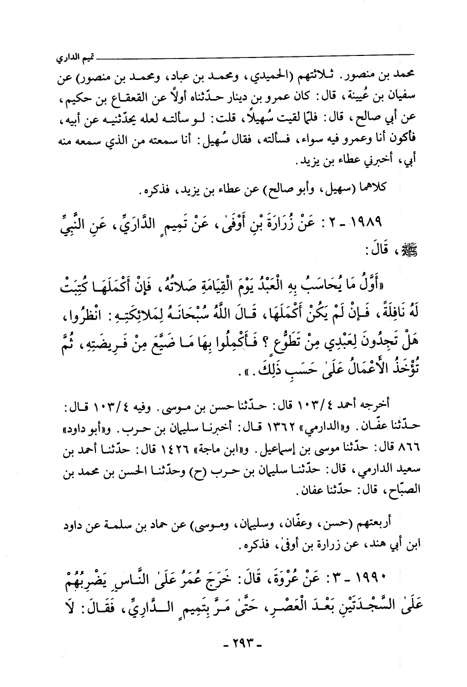 ١٩٨٩ - عَنْ زُرَارَةَ بْنِ أَوْفَى، عَنْ تَمِيمٍ الدَّارِيِّ، عَنِ النَّبِيِّ صلى الله عليه وسلم، قَالَ: