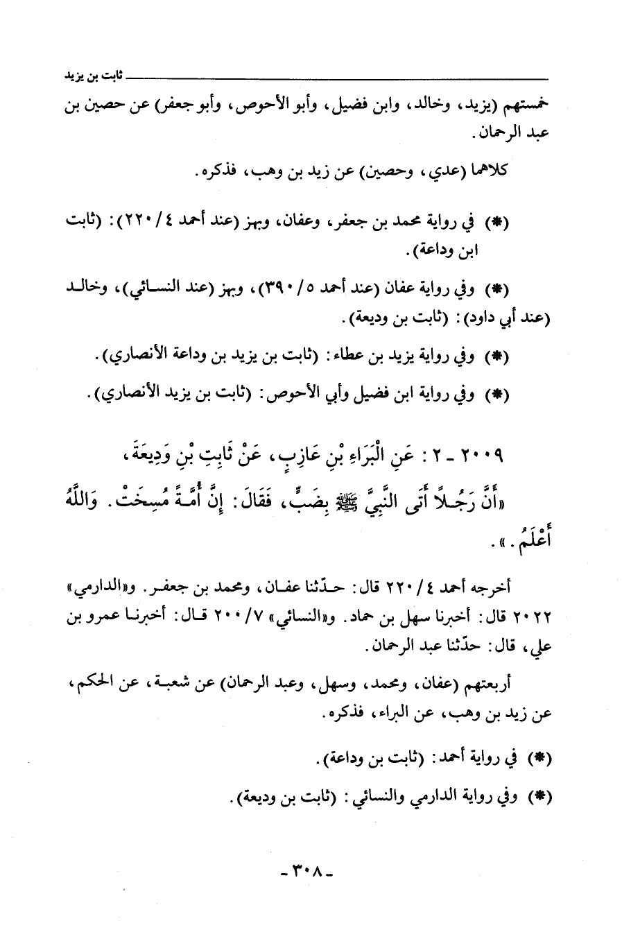 ٢٠٠٩ - عَنِ الْبَرَاءِ بْنِ عَازِبٍ , عَنْ ثَابِتِ بْنِ وَدِيعَةَ ,
