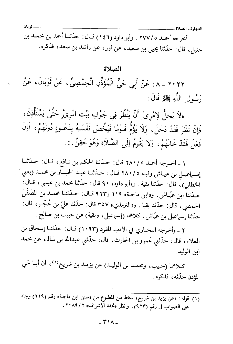 ٢٠٢٢ - عَنْ أَبِي حَيٍّ الْمُؤَذِّنِ، عَنْ ثَوْبَانَ، عَنْ رَسُولِ اللهِ صلى الله عليه وسلم، أَنَّهُ قَالَ: