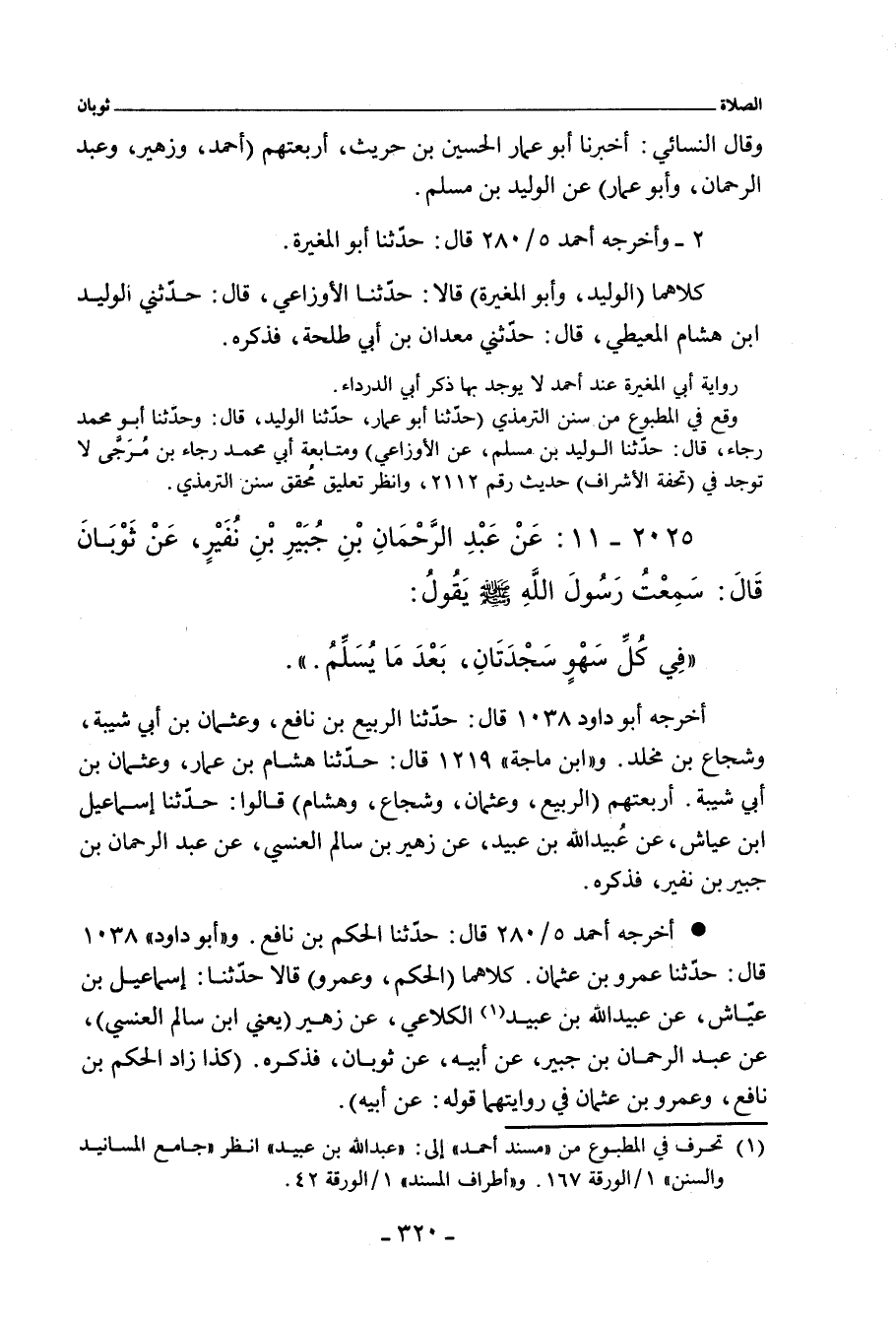 ٢٠٢٥ - عن عَبْد الرَّحْمان بن جُبَيْر بن نُفَيْر، عَنْ ثَوْبَانَ، قَالَ: سَمِعُْ رَسُولُ اللهِ صلى الله عليه وسلم يَقُولُ: