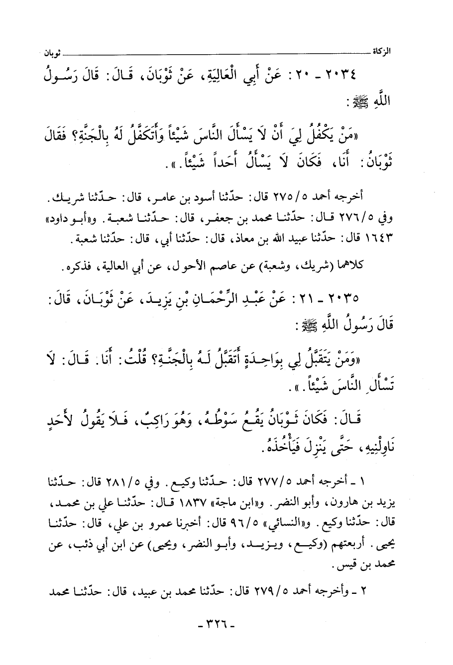 ٢٠٣٥ - عَنْ عَبْدِ الرَّحْمَانِ بْنِ يَزِيدَ، عَنْ ثَوْبَانَ، قَالَ: قَالَ رَسُولُ اللهِ صلى الله عليه وسلم: