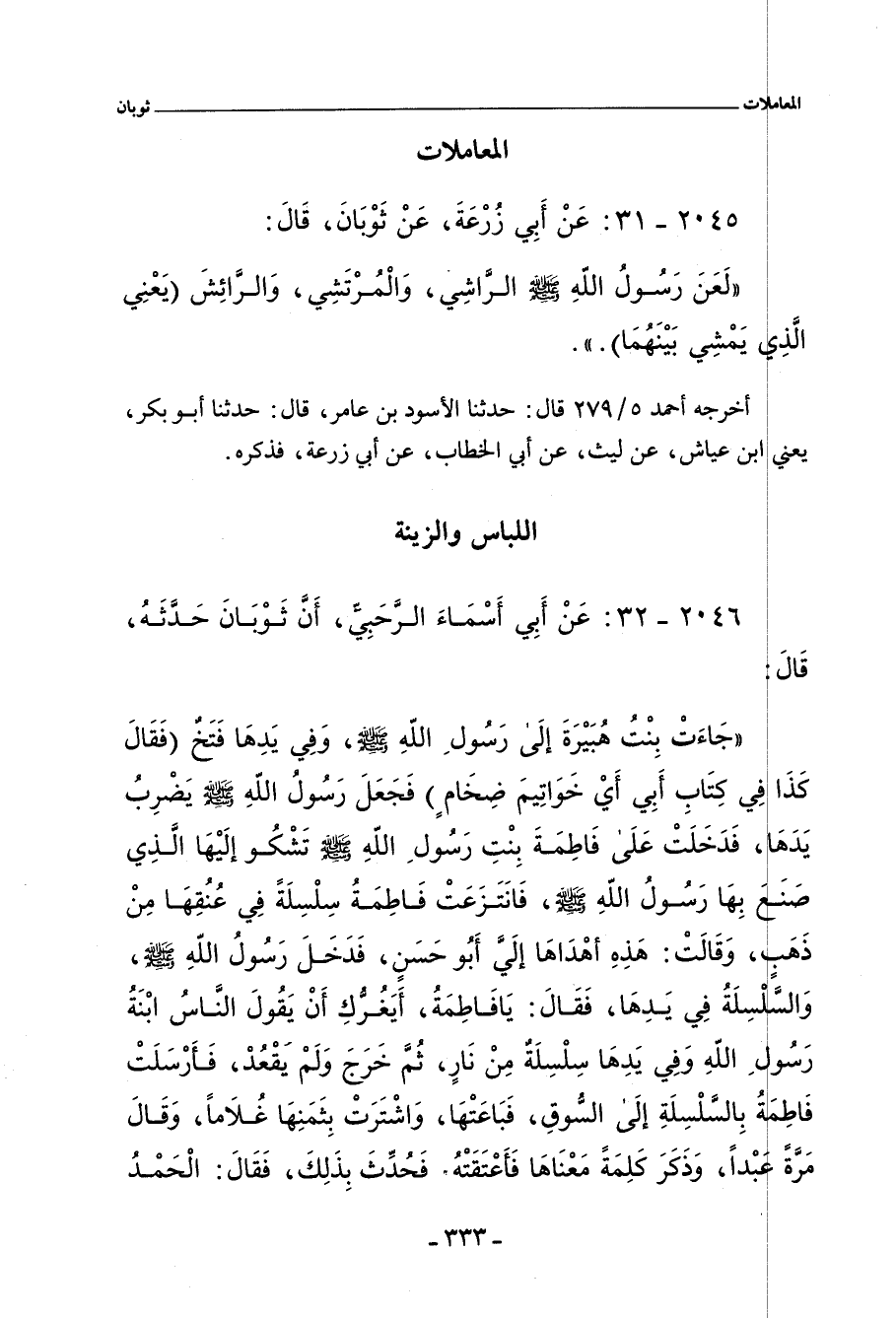 ٢٠٤٥ - عَنْ أَبِي زُرْعَةَ، عَنْ ثَوْبَانَ، قَالَ: