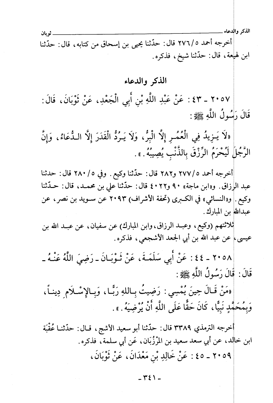 لَا يَزِيدُ فِي الْعُمُرِ إِلَاّ الْبِرُّ، وَلَا يَرُدُّ الْقَدَرَ إِلَاّ الدُّعَاءُ، وَإِنَّ الرَّجُلَ لَيُحْرَمُ الرِّزْقَ بِالذَّنْبِ يُصِيبُهُ.