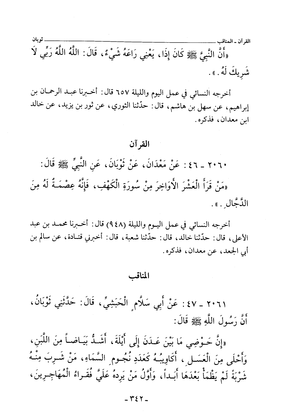 ٢٠٦٠ - عَنْ مَعْدَانَ، عَنْ ثَوْبَانَ، عَنِ النَّبِيِّ صلى الله عليه وسلم، قَالَ: