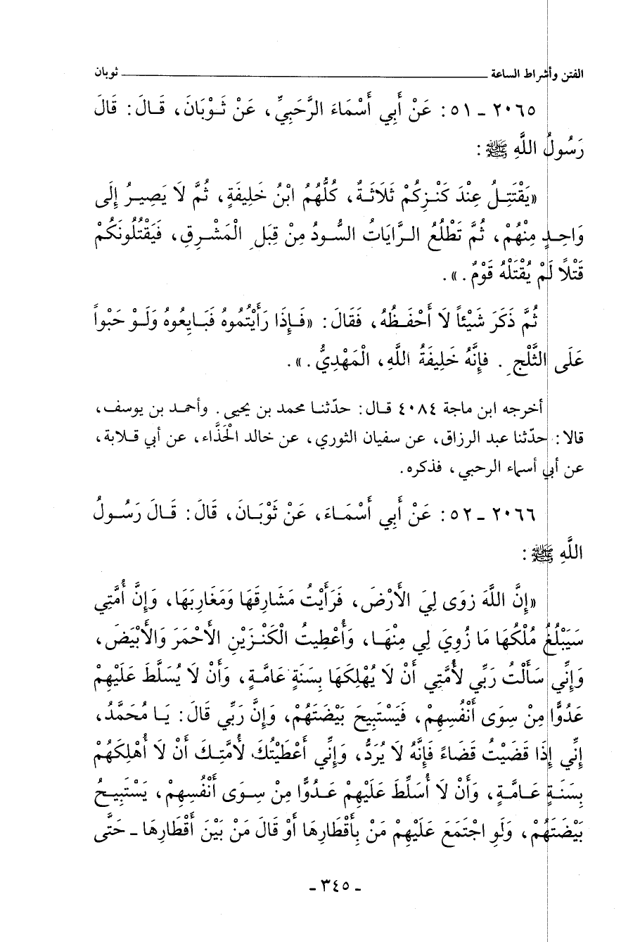 ٢٠٦٦ - عَنْ أَبِي أَسْمَاءَ الرَّحَبِيِّ، عَنْ ثَوْبَانَ، مَوْلَى رَسُولِ اللهِ صلى الله عليه وسلم، أَنَّ رَسُولَ اللهِ صلى الله عليه وسلم قَالَ: