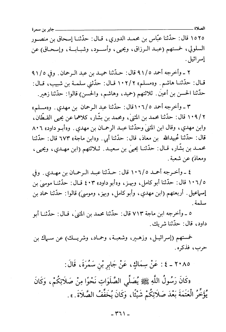 ٢٠٨٥ - عَنْ سِمَاكٍ، عَنْ جَابِرِ بْنِ سَمُرَةَ، قَالَ: