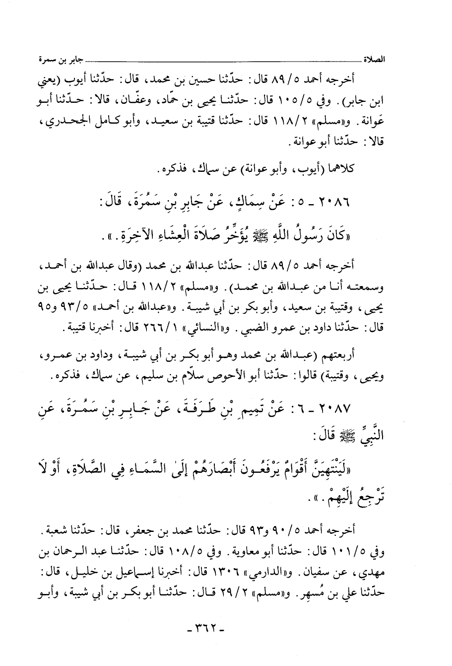 ٢٠٨٦ - عَنْ سِمَاكٍ، عَنْ جَابِرِ بْنِ سَمُرَةَ، قَالَ: