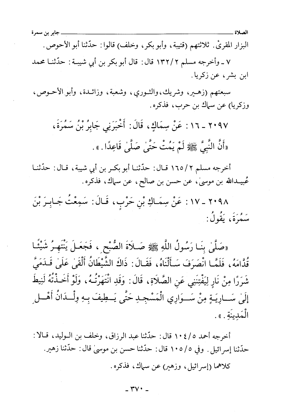 ٢٠٩٧ - عَنْ سِمَاكٍ، قَالَ: أَخْبَرَنِي جَابِرُ بْنُ سَمُرَةَ؛
