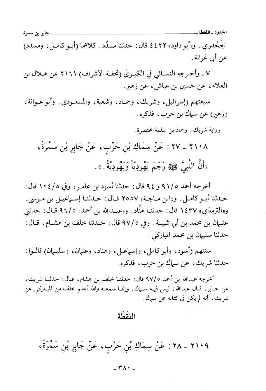٢١٠٨ - عَنْ سِمَاكِ بْنِ حَرْبٍ، عَنْ جَابِرِ بْنِ سَمُرَةَ؛