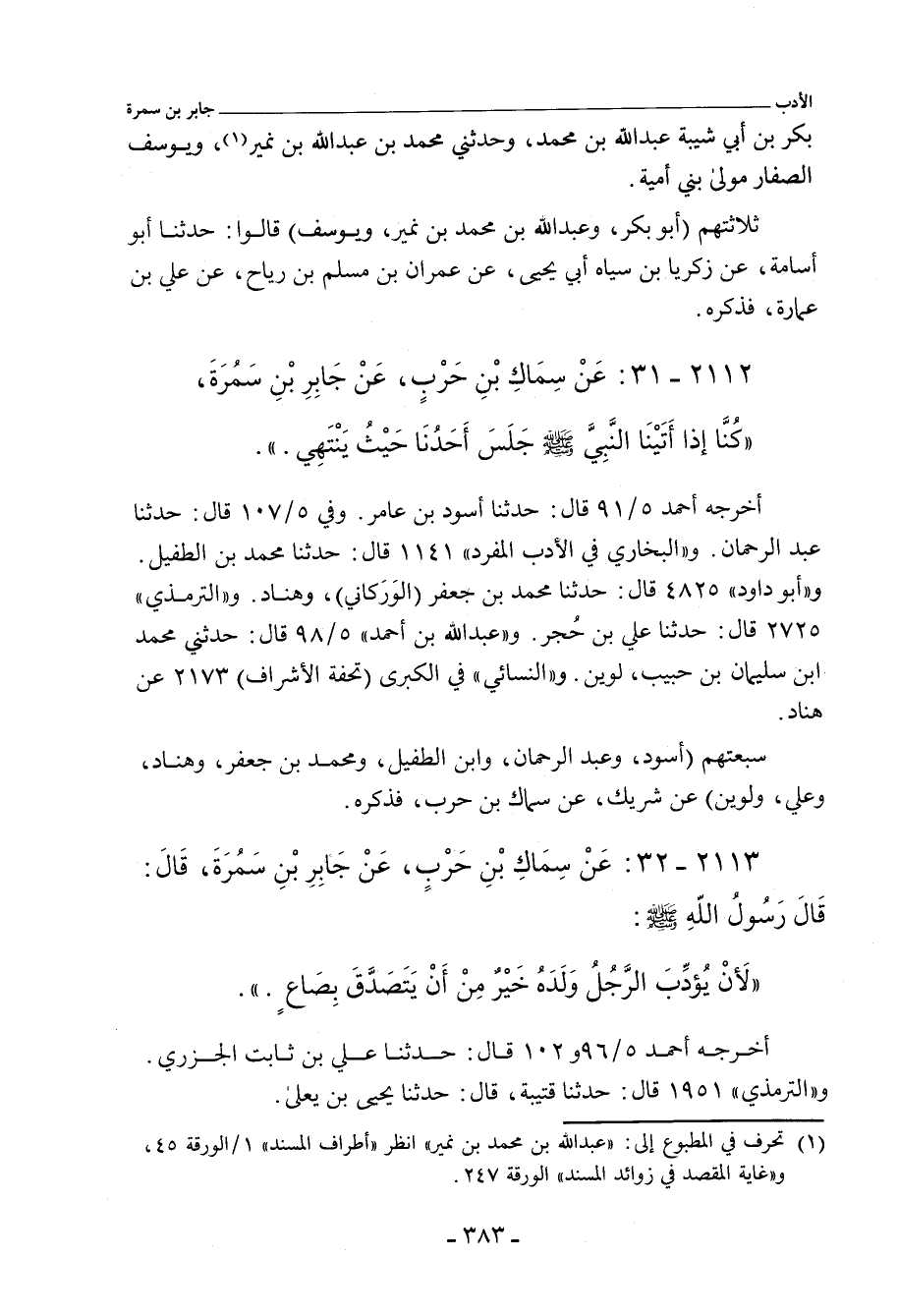 ٢١١٢ - عَنْ سِمَاكِ بْنِ حَرْبٍ، عَنْ جَابِرِ بْنِ سَمُرَةَ، قَالَ: