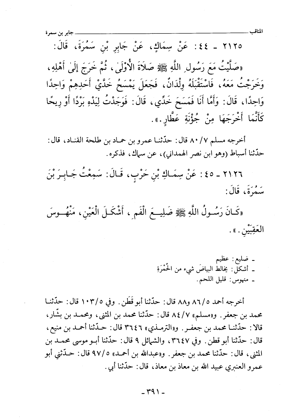 ٢١٢٥ - عَنْ سِمَاكٍ، عَنْ جَابِرِ بْنِ سَمُرَةَ، قَالَ: