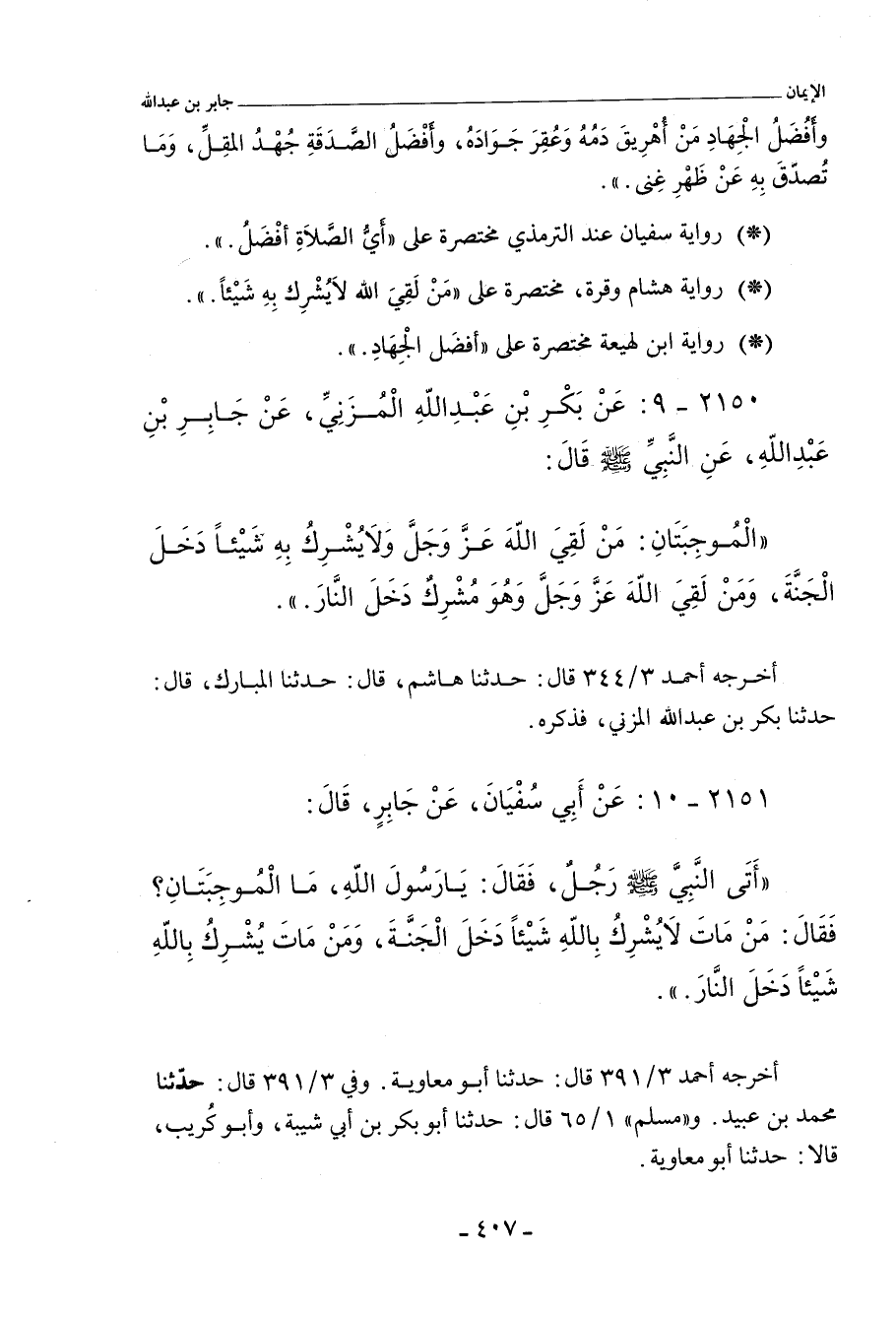 ٢١٥٠ - عَنْ بَكْرِ بْنِ عَبْدِ اللهِ الْمُزَنِيِّ، عَنْ جَابِرِ بْنِ عَبْدِ اللهِ، عَنِ النَّبِيِّ صلى الله عليه وسلم، قَالَ:
