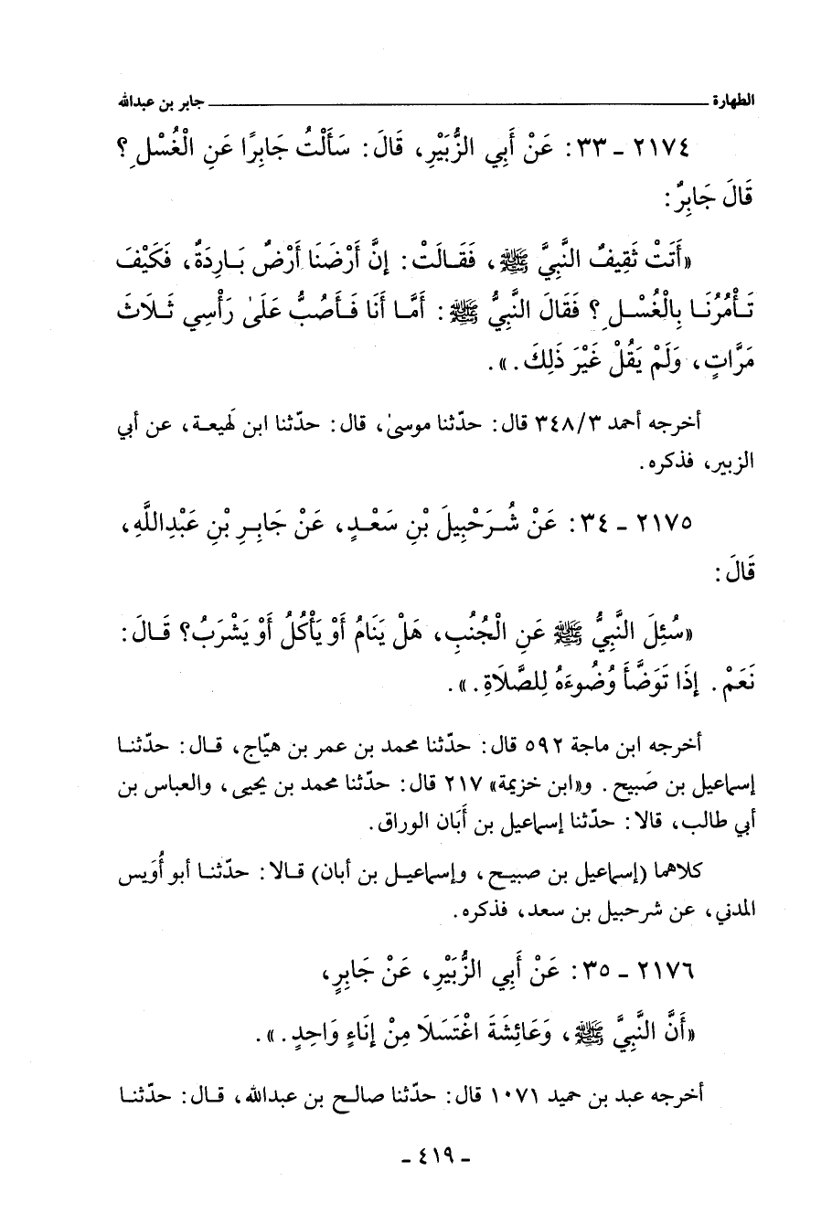 ٢١٧٤ - عَنْ أَبِي الزُّبَيْرِ، قَالَ: سَأَلْتُ جَابِرًا عَنِ الْغُسْلِ؟ قَالَ جَابِرٌ: