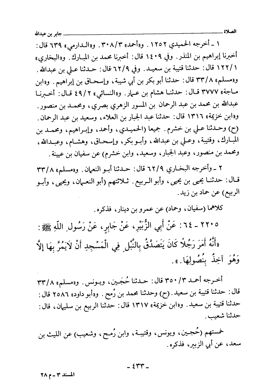 كلاهما (أبو النُّعْمَان، ويَحيى، وأبو الرَّبِيع) عن حَمَّاد بن زَيْد، عَنْ عَمْرِو بْنِ دِينَارٍ، عَنْ جَابِرٍ؛