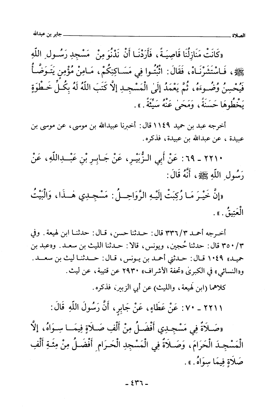 - وفي رواية: خَيْرُ مَا رُكِبَتْ إِلَيْهِ الرَّوَاحِلُ: مَسْجِدُ إِبْرَاهِيمَ، عَلَيْهِ السَّلَامُ، وَمَسْجِدِي.
