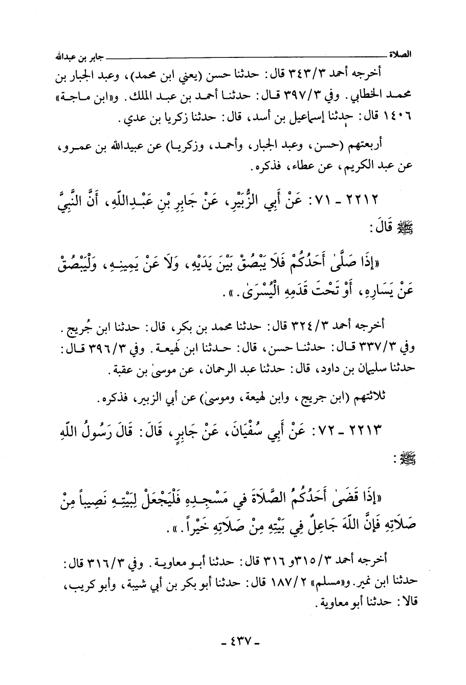 ٢٢١٢ - عَنْ أَبِي الزُّبَيْرِ، عَنْ جَابِرِ بْنِ عَبْدِ اللهِ، أَنَّ النَّبِيَّ صلى الله عليه وسلم قَالَ: