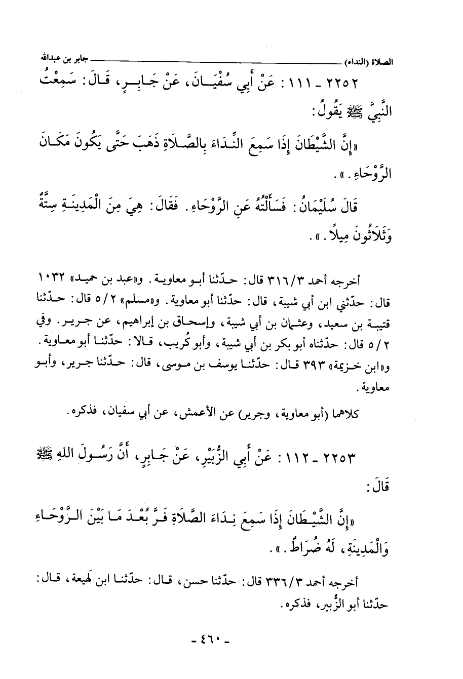 إِنَّ الشَّيْطَانَ إِذَا سَمِعَ النِّدَاءَ بِالصَّلَاةِ ذَهَبَ، حَتَّى يَكُونَ مَكَانَ الرَّوْحَاءِ.