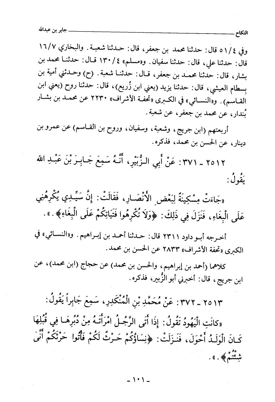 وفي ٤/ ٥١ (١٦٦٤٩) قال: حدَّثنا مُحَمد بن جَعْفَر، قال: حدَّثنا شُعْبة. و"البُخَارِي" (٥١١٧ و ٥١١٨) قال: حدَّثنا علي، حدَّثنا سُفْيان. و"مسلم" ٤/ ١٣٠ (٣٣٩٤) قال: حدَّثنا مُحَمد بن بَشَّار، حدَّثنا مُحَمد بن جَعْفَر، حدَّثنا شُعْبة. وفي (٣٣٩٥) قال: وحدَّثني أُمَيَّة بن بِسْطَام العَيْشِي، حدَّثنا يَزِيد، يَعْنِي ابن زُرَيْع، حدَّثنا رَوْح، يَعْنِي ابن القاسم. و"النَّسائي"، في "الكبرى" ٥٥١٤ قال: أخبرنا مُحَمد بن بَشَّار , قال: حدَّثنا مُحَمد، يَعْنِي غُنْدَرًا , قال: حدَّثنا شُعْبة.