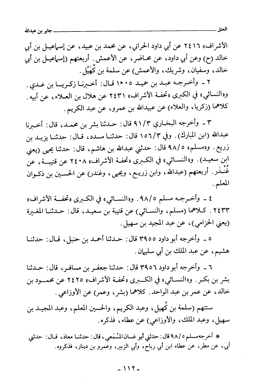 أخبرنا أبو داود , قال: حدَّثنا مُحَمد بن عُبَيْد , قال: حدَّثنا إِسْمَاعِيل بن أَبي خالد، عن سَلَمَة بن كُهَيْل. وفي (٤٩٨٥) قال: أخبرنا أبو داود , قال: حدَّثنا مُحَاضِر , قال: حدَّثنا الأَعْمَش، عن سَلَمَة بن كُهَيْل. وفي (٤٩٨٦) قال: أخبرني هِلَال بن العَلَاء , قال: حدَّثني أَبي , قال: حدَّثنا عُبَيْد اللهِ، عن عَبْد الكَرِيم.
