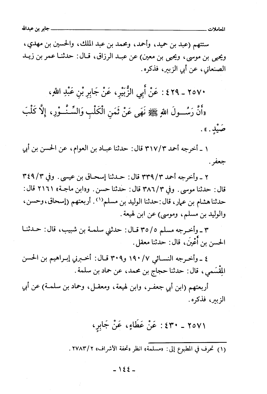 ٢٥٧٠ - عَنْ أَبِي الزُّبَيْرِ، عَنْ جَابِرِ بْنِ عَبْدِ اللهِ؛