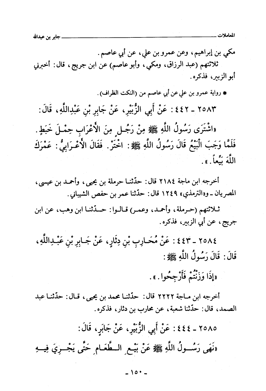 ٢٥٨٣ - عَنْ أَبِي الزُّبَيْرِ، عَنْ جَابِرِ بْنِ عَبْدِ اللهِ، قَالَ: