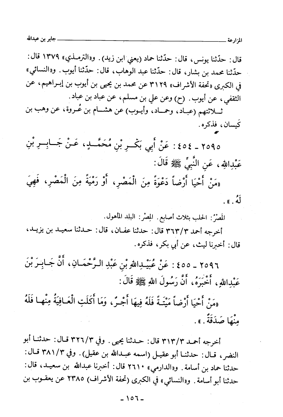 ٢٥٩٥ - عَنْ أَبِي بَكْرِ بْنِ مُحَمَّدٍ، عَنْ جَابِرِ بْنِ عَبْدِ اللهِ الأَنْصَارِيِّ، عَنِ النَّبِيِّ صلى الله عليه وسلم، قَالَ:
