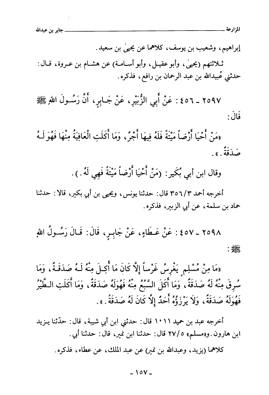 ٢٥٩٧ - عَنْ أَبِي الزُّبَيْرِ، عَنْ جَابِرٍ، أَنَّ رَسُولَ اللهِ صلى الله عليه وسلم قَالَ: