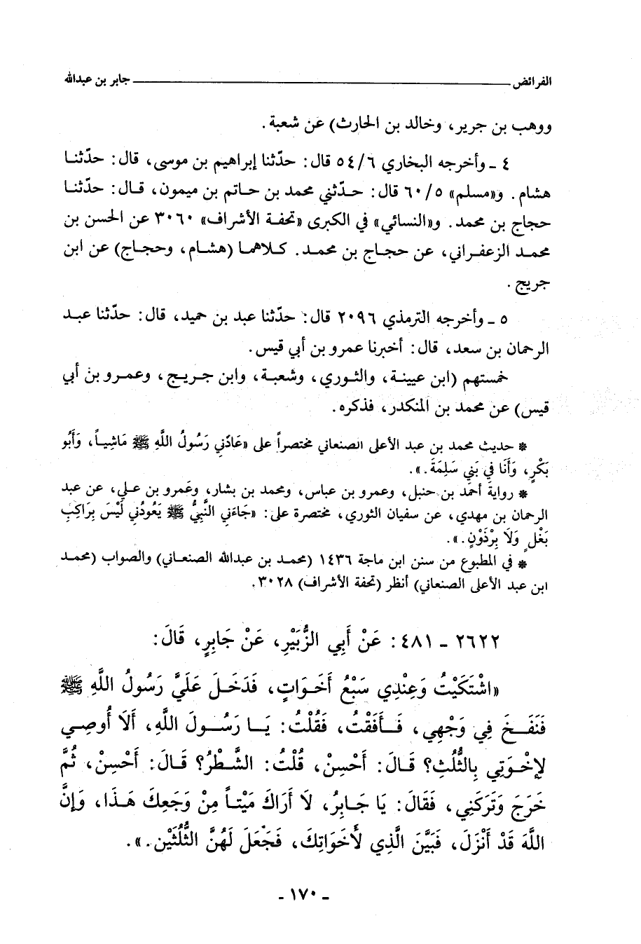 خمستهم (سُفْيان بن عُيَيْنَة، وشُعْبة، وابن جُرَيْج، وسُفْيان الثَّوْرِي، وعَمْرو بن أَبي قَيْس) عن مُحَمد بن المُنْكَدِر، فذكره.