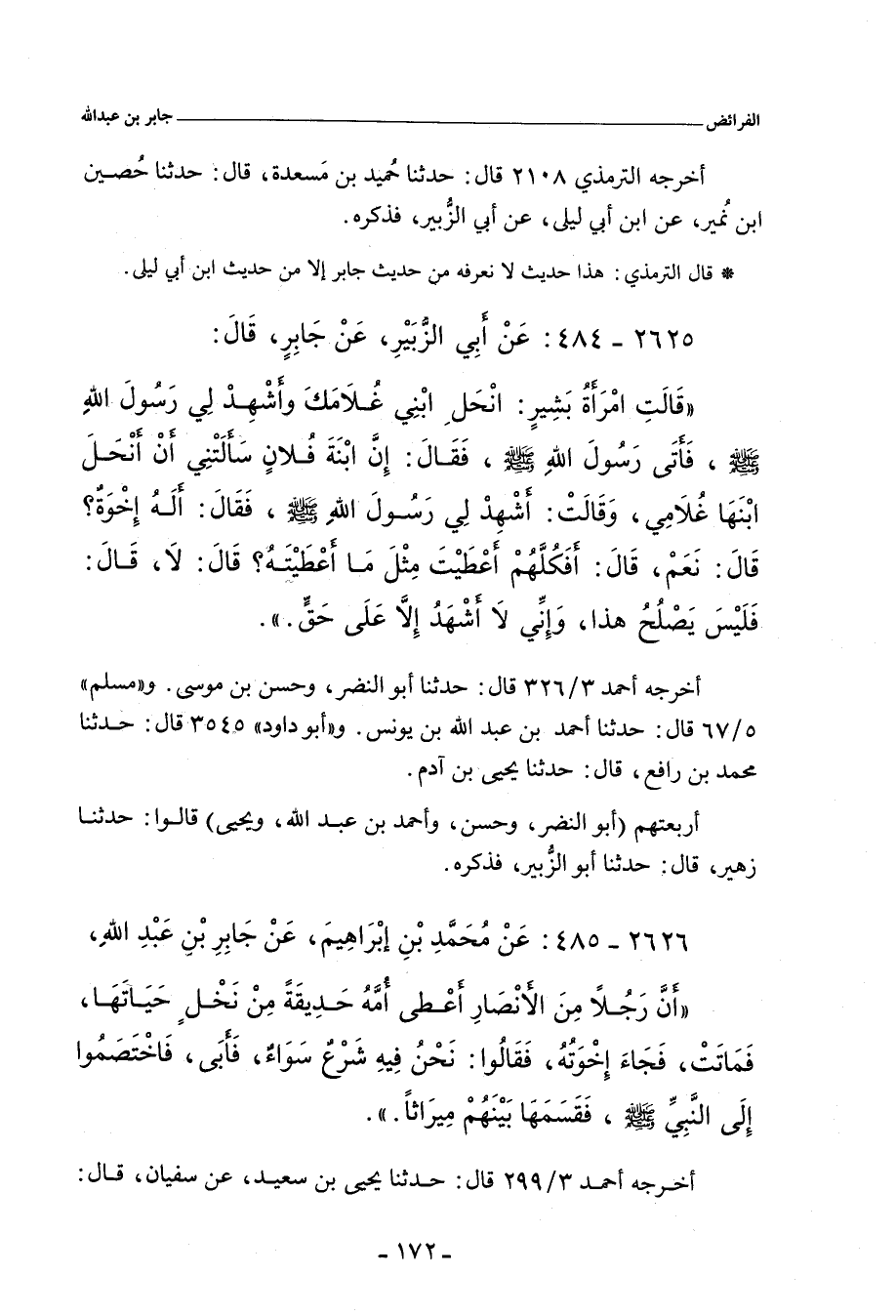- قال أبو عِيسَى التِّرْمِذِي: هذا حديثٌ لا نعرفُه من حديثِ جابرٍ إلا من حديثِ ابن أَبي لَيْلَى.