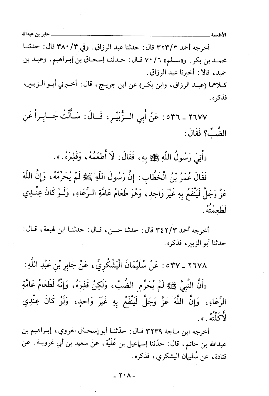 ٢٦٧٧ - عَن أَبِي الزُّبَيْرِ، قَالَ: سَأَلْتُ جَابِرًا عَنِ الضَّبِّ؟ فَقَالَ: