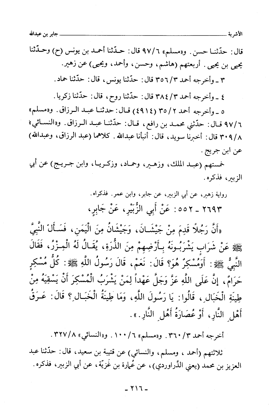 سبعتهم (سُفْيان بن عُيَيْنَة، وعَبْد الملك، وأَشْعَث، وزُهَيْر بن مُعَاوِيَة، أبو خَيْثَمَة، وحَمَّاد، وزكريا، وأبو عَوَانَة) عن أَبي الزُّبَيْر، فذكره.
