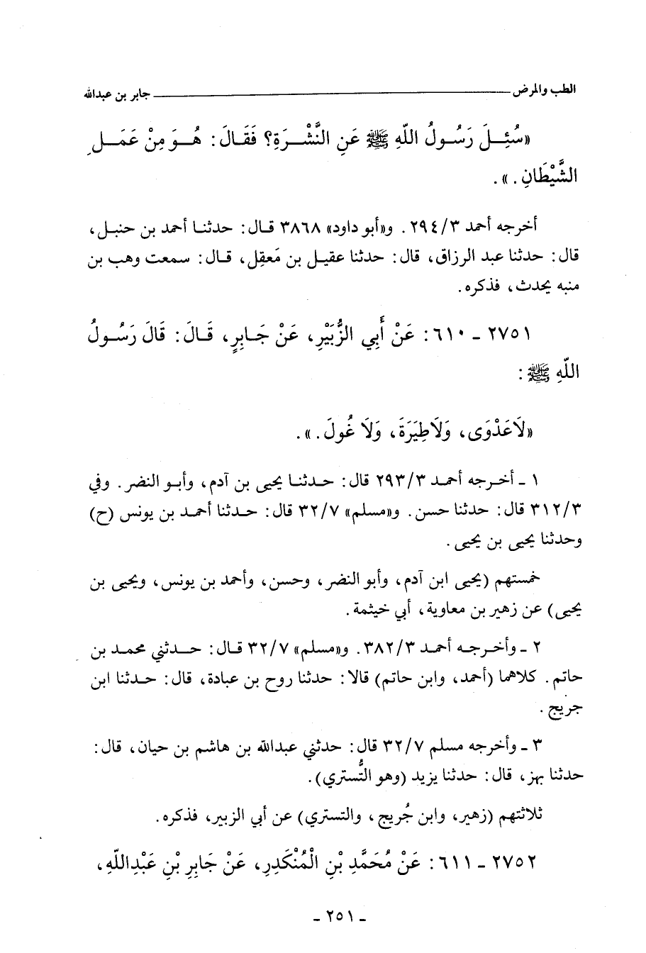 وَسَمِعْتُ أَبَا الزُّبَيْرِ يَذْكُرُ، أَنَّ جَابِرًا فَسَّرَ لَهُمْ قَوْلَهُ: لَا صَفَرَ. فَقَالَ أَبُو الزُّبَيْرِ: الصَّفَرُ الْبَطْنُ. قِيلَ لِجَابِرٍ: كَيْفَ؟ قَالَ: كَانَ يُقَالُ: دَوَابُّ الْبَطْنِ. قَالَ: وَلَمْ يُفَسِّرِ الْغُولَ. قَالَ أَبُو الزُّبَيْرِ مِنْ قِبَلِهِ: هَذِهِ الْغُولُ الَّتِي تَغَوَّلُ، الشَّيْطَانَةُ الَّتِي يَقُولُونَ.
