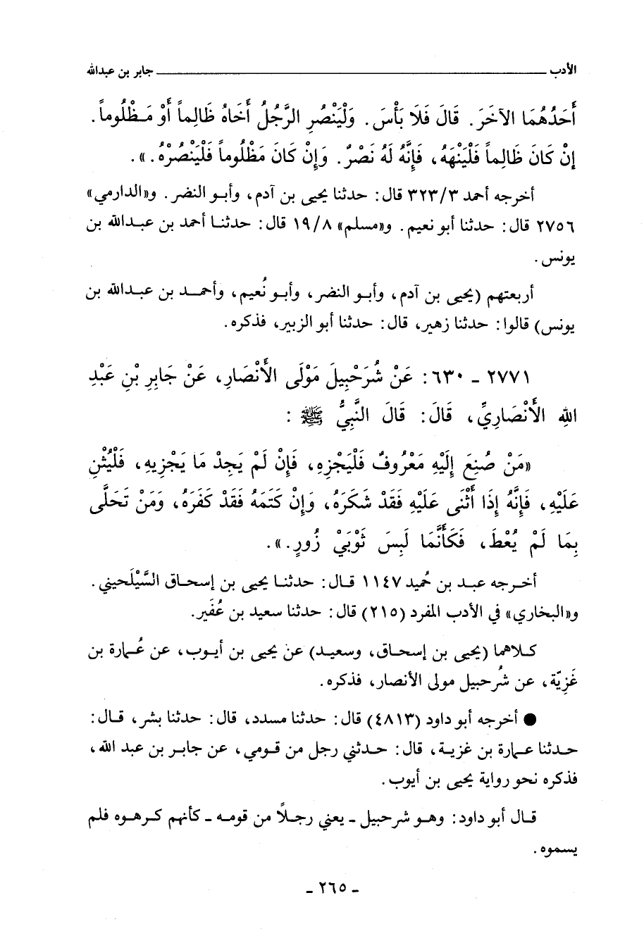 ٢٧٧١ - عَنْ شُرَحْبِيلَ، مَوْلَى الأَنْصَارِ، عَنْ جَابِرِ بْنِ عَبْدِ اللهِ الأَنْصَارِيِّ، قَالَ: قَالَ النَّبِيُّ صلى الله عليه وسلم: