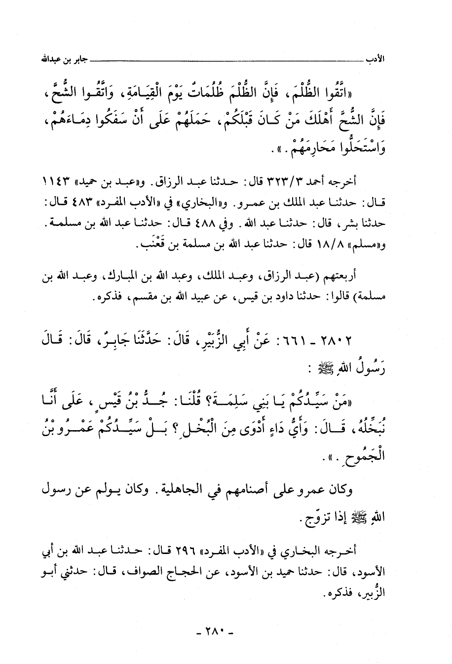 أخرجه البُخَارِي، في (الأدب المفرد) ٢٩٦ قال: حدَّثنا عَبْد اللهِ بن أَبي الأَسْوَد، قال: حدَّثنا حُمَيْد بن الأَسْوَد، عن الحَجَّاج الصَّوَّاف، قال: حدَّثني أبو الزُّبَيْر، فذكره.