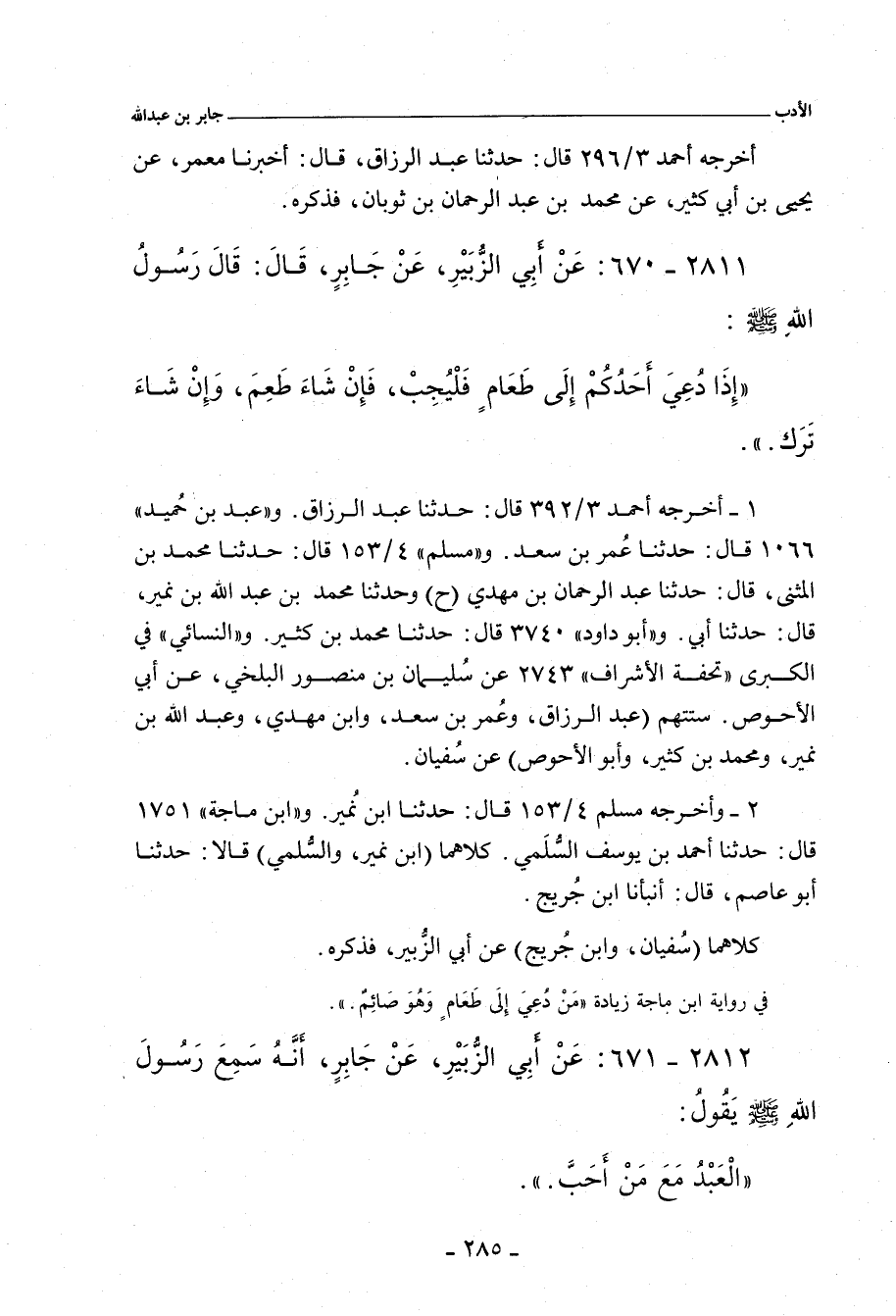 ٢٨١١ - عَنْ أَبِي الزُّبَيْرِ، عَنْ جَابِرٍ، قَالَ: قَالَ رَسُولُ اللهِ صلى الله عليه وسلم: