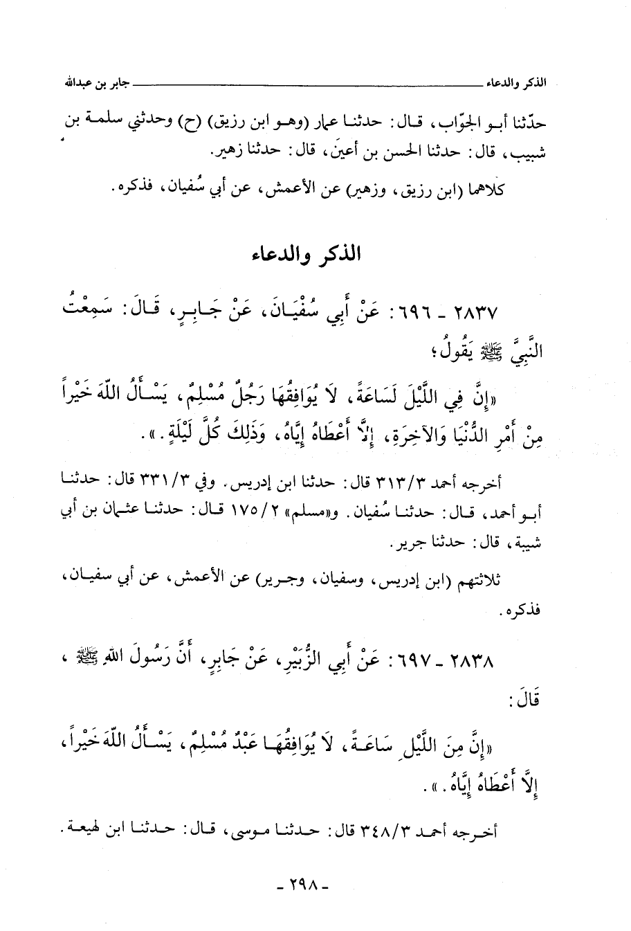 ٢٨٣٨ - عَنْ أَبِي الزُّبَيْرِ، عَنْ جَابِرٍ، أَنَّ رَسُولَ اللهِ صلى الله عليه وسلم قَالَ: