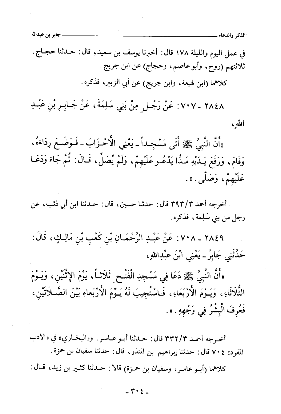 ٢٨٤٩ - عَنْ عَبْدِ اللهِ بْنِ عَبْدِ الرَّحْمَانِ بْنِ كَعْبِ بْنِ مَالِكٍ، حَدَّثَنِي جَابِرٌ، يَعْنِي ابْنَ عَبْدِ اللهِ؛