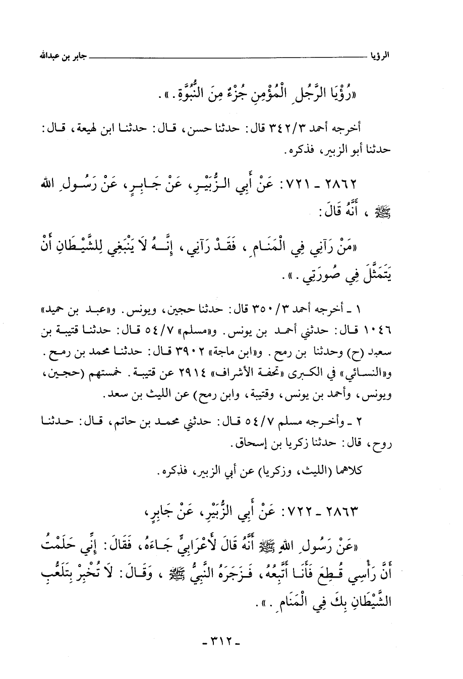 مَنْ رَآنِي فِي النَّوْمِ، فَقَدْ رَآنِي، فَإِنَّهُ لَا يَنْبَغِي لِلشَّيْطَانِ أَنْ يَتَشَبَّهَ بِي.