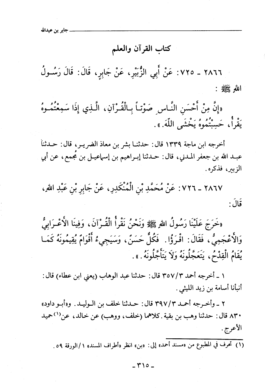 ٢٨٦٦ - عَنْ أَبِي الزُّبَيْرِ، عَنْ جَابِرٍ، قَالَ: قَالَ رَسُولُ اللهِ صلى الله عليه وسلم: