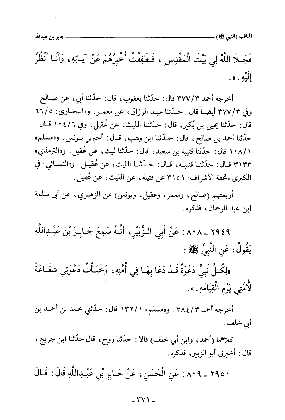 - وفي رواية: لَمَّا كَذَّبَتْنِي قُرَيْشٌ، حِينَ أُسْرِيَ بِي إِلَى بَيْتِ الْمَقْدِسِ، قُمْتُ فِي الْحِجْرِ، فَجَلَّى اللهُ لِي بَيْتَ الْمَقْدِسِ، فَطَفِقْتُ أُخْبِرُهُمْ عَنْ آيَاتِهِ، وَأَنَا أَنْظُرُ إِلَيْهِ.
