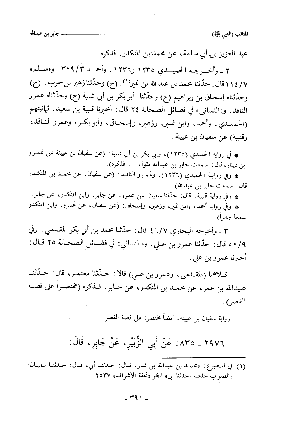 - وفي رواية الحُمَيْدِي (١٢٣٦)، وأحمد (١٤٣٧٢)، ومُسْلم (٦٢٧٤ و ٦٢٧٥ و ٦٢٧٧)، والنسائي (٨٠٧١): ابن المُنْكَدِر.