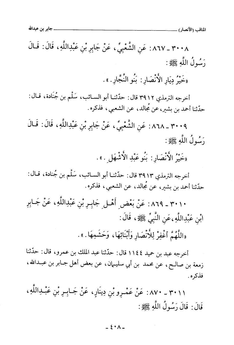 ٣٠٠٨ - عَنِ الشَّعْبِيِّ، عَنْ جَابِرِ بْنِ عَبْدِ اللهِ، قَالَ: قَالَ رَسُولُ اللهِ صلى الله عليه وسلم: