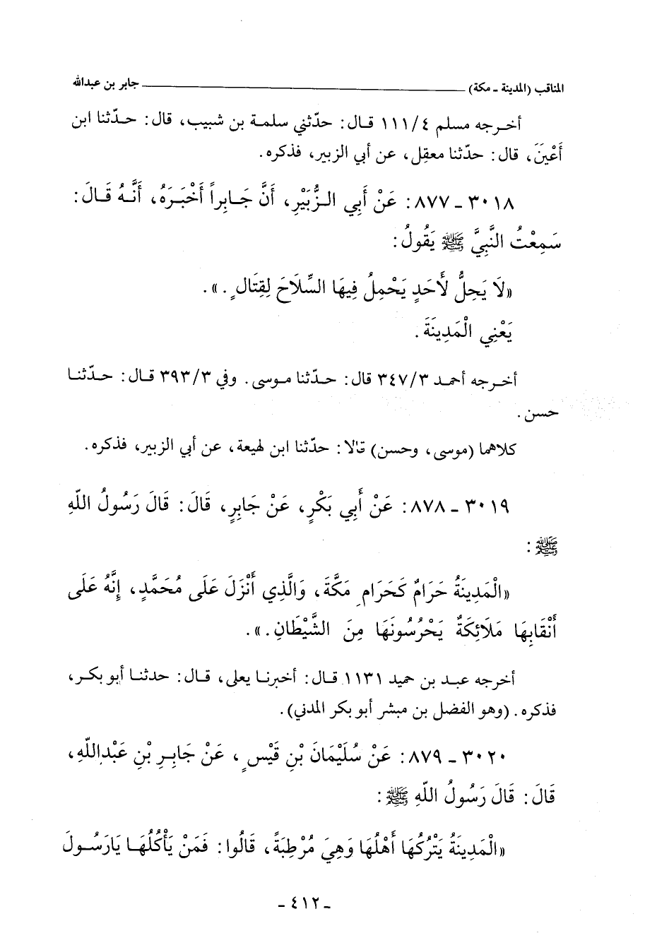 ٣٠١٩ - عَنْ أَبِي بَكْرٍ الْمَدَنِيِّ، عَنْ جَابِرٍ، قَالَ: قَالَ رَسُولُ اللهِ صلى الله عليه وسلم: