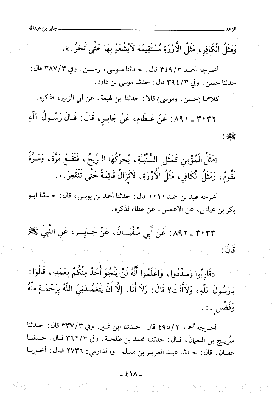 ٣٠٣٣ - عَنْ أَبِي سُفْيَانَ، عَنْ جَابِرٍ، قَالَ: قَالَ رَسُولُ اللهِ صلى الله عليه وسلم: