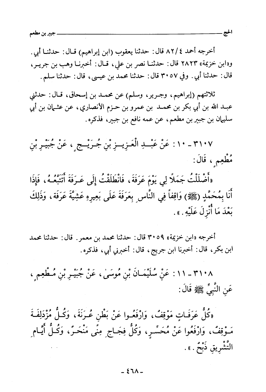 ٣١٠٧ - عَنْ عَبْدِ الْعَزِيزِ بْنِ جُرَيْجٍ، عَنْ جُبَيْرِ بْنِ مُطْعِمٍ، قَالَ: